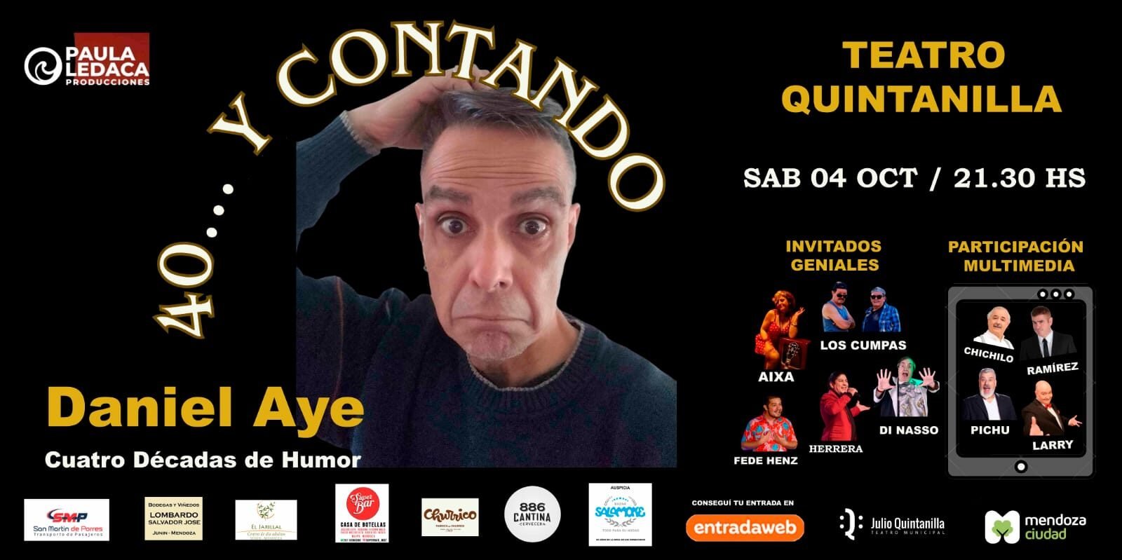 Daniel Aye está cumpliendo cuatro décadas de humor y lo festejará el sábado 4 de octubre en el Teatro Quintanilla con el espectáculo “Cuarenta y contando”.