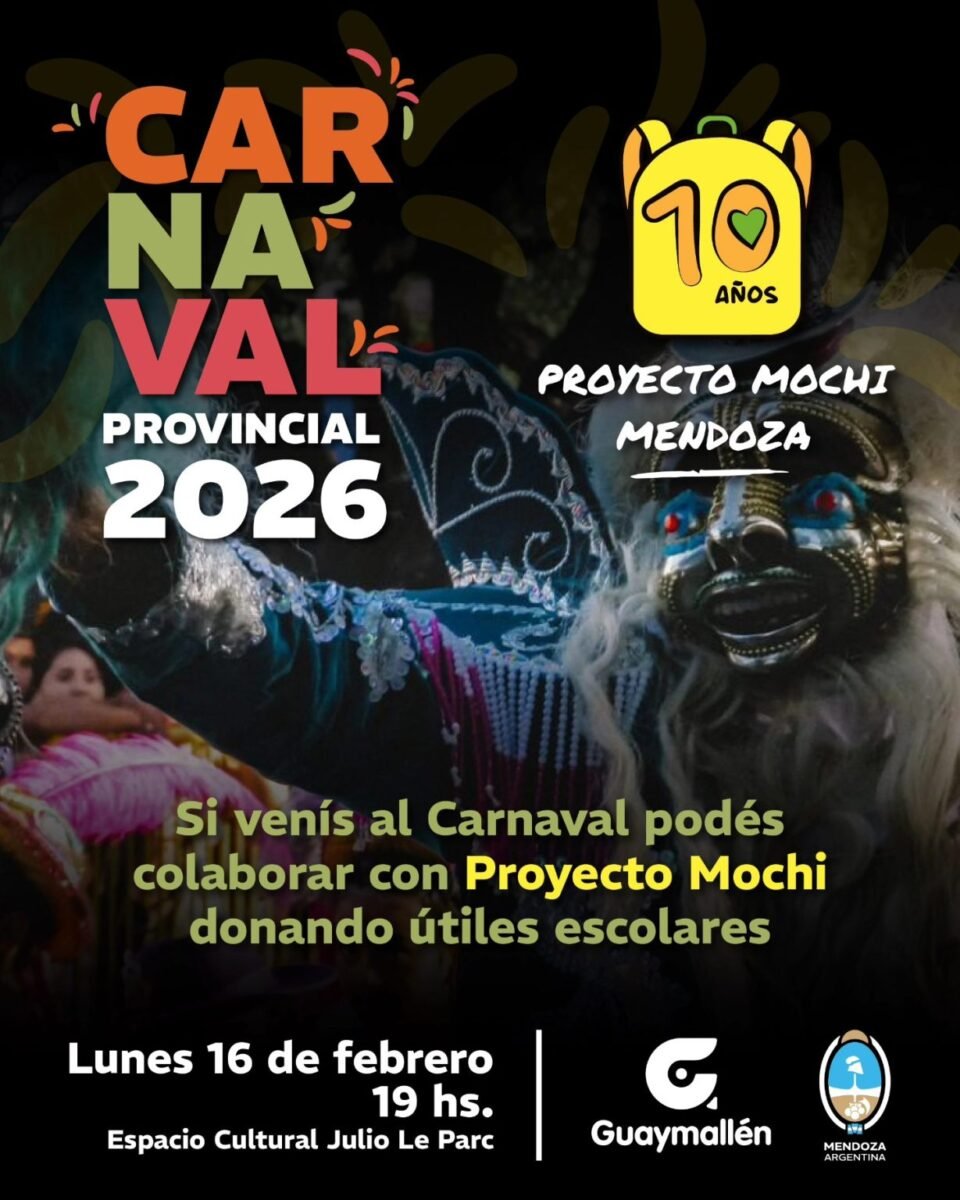 La Subsecretaría de Cultura de la Provincia de Mendoza y la Municipalidad de Guaymallén invitan a disfrutar del Carnaval provincial en el Espacio Cultural Julio Le Parc.
