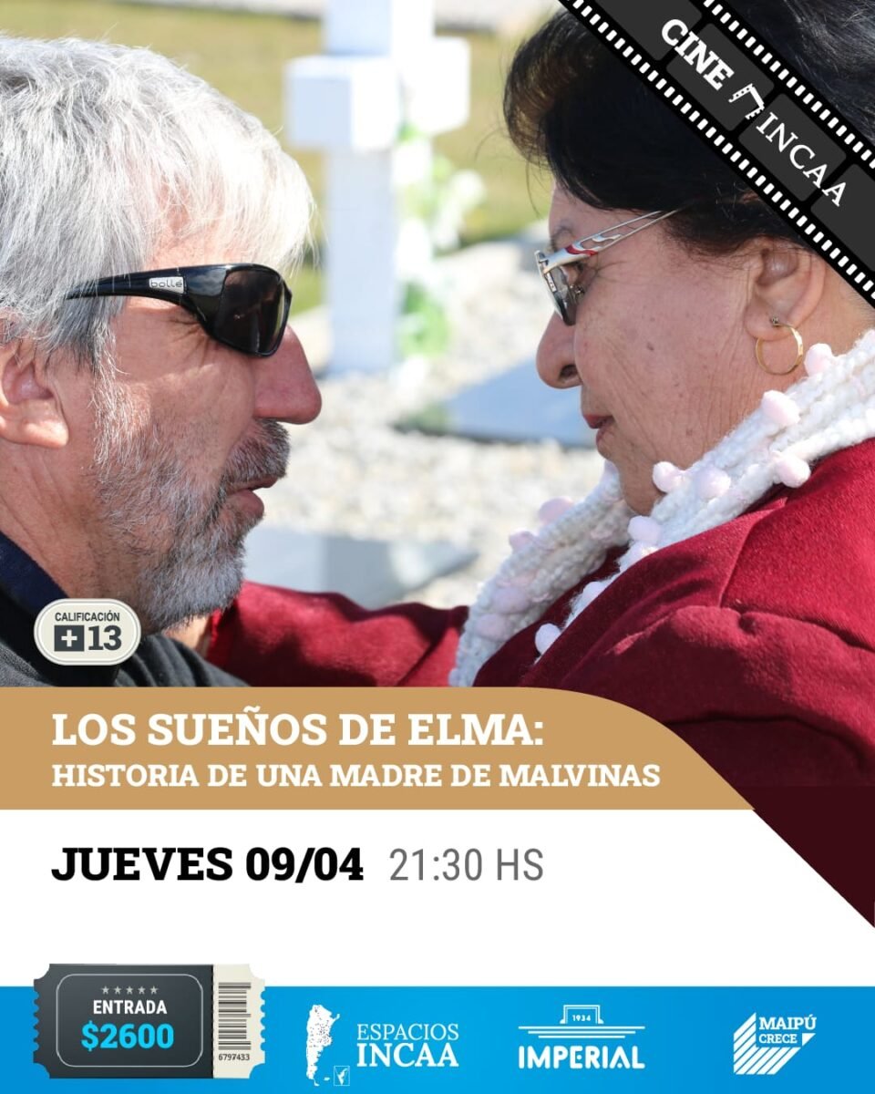 Jueves 9/4 – 21.30 hs: Los sueños de Elma: historia de una madre de Malvinas (ATP +13). Un conmovedor retrato de Elma Pelozo, madre de un soldado caído, cuya lucha incansable permitió la restitución de identidades de los héroes enterrados como NN en el cementerio de Darwin.