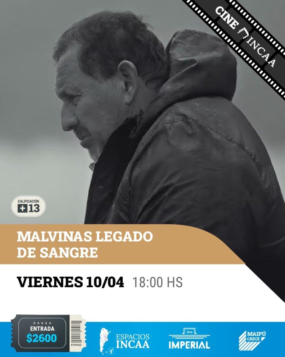 Viernes 10/4 – 18 hs: Malvinas legado de sangre (ATP +13). Ocho veteranos regresan a las Islas junto a sus familias, combinando testimonios de guerra, miradas de las nuevas generaciones y animaciones de momentos cruciales del conflicto.