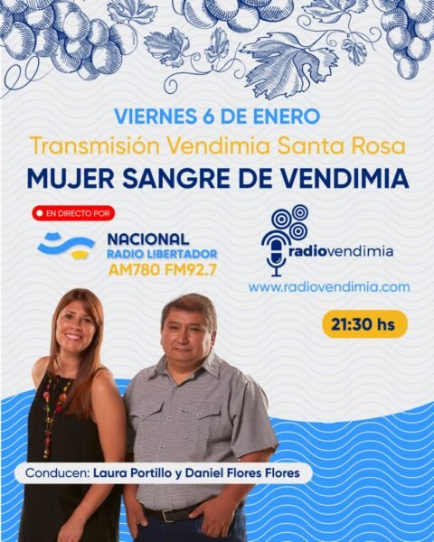 Todas las instancias que se vivirán en el Club Social y Deportivo de La Dormida podrás disfrutarlas a través de nuestra señal on line www.radiovendimia.com con el equipo de Vivo Vendimia Laura Portillo y Daniel Flores Flores, y por el aire de LV8 Nacional Libertador FM 92.7 y AM 780.