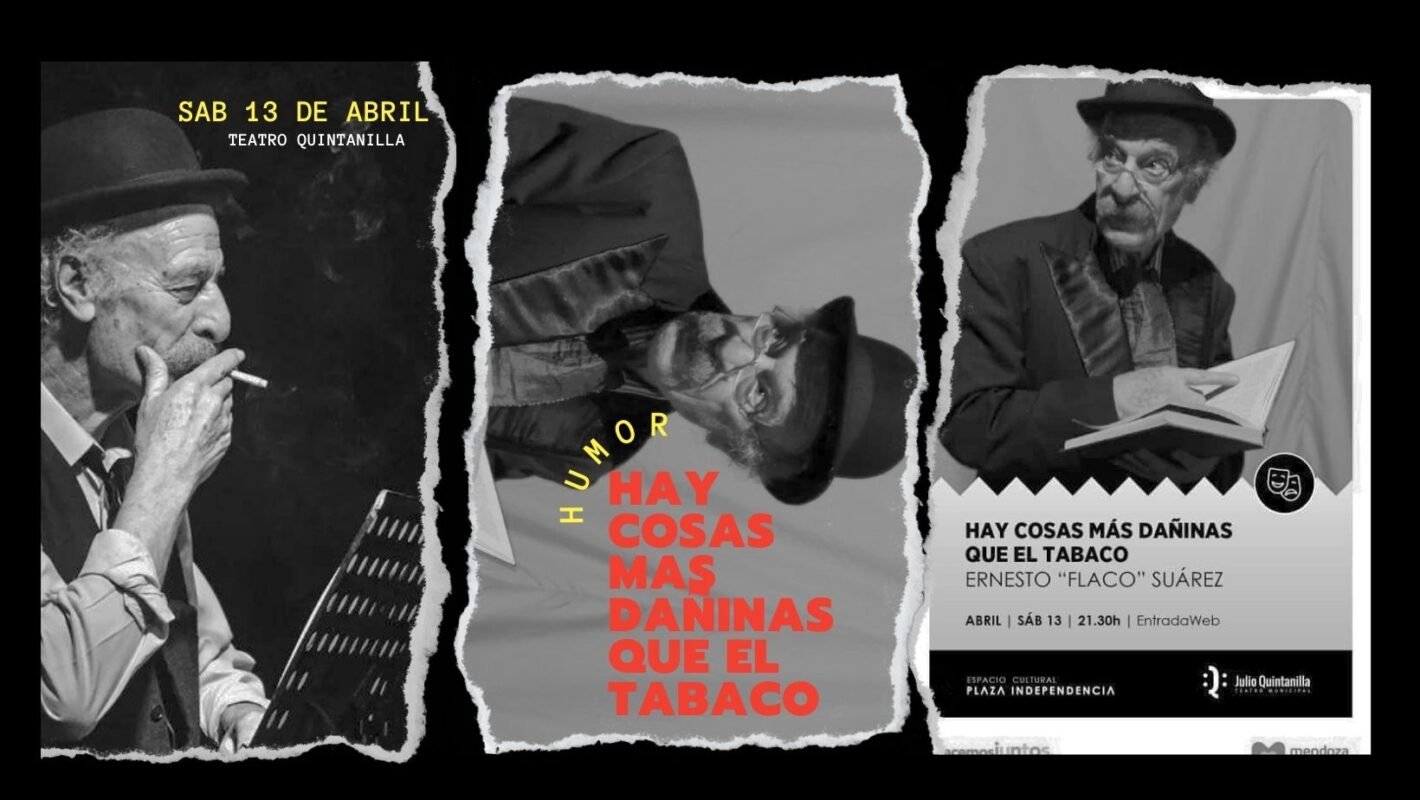 «Hay cosas más dañinas que el tabaco» es el segundo unipersonal de Ernesto Suárez, escrito y dirigido por él, con la asistencia en dirección de Gonzalo Aranda e inspirado en cuentos de Chejov, «Sobre el daño que hace el tabaco». El miedo al qué dirán, a los poderosos y a la burla, así como el ensañamiento sobre un ser demasiado débil para la sociedad, son los ejes de esta obra que obtuvo el Premio Escenario a Mejor Espectáculo de humor en 2016., que marcó el regreso del Flaco al género, varios años después de Lágrimas y risas.