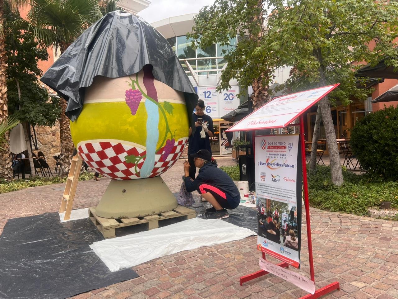 La tradición croata de las Pisanice ya se vive en Mendoza. Desde este 31 de marzo, el centro comercial Palmares Mall se transformó en un taller artístico a cielo abierto donde quince artistas locales (que conforman doce equipos) comenzaron a intervenir en vivo los emblemáticos huevos gigantes, en el marco del evento “Dobro Vino i Sretan Uskrs”.