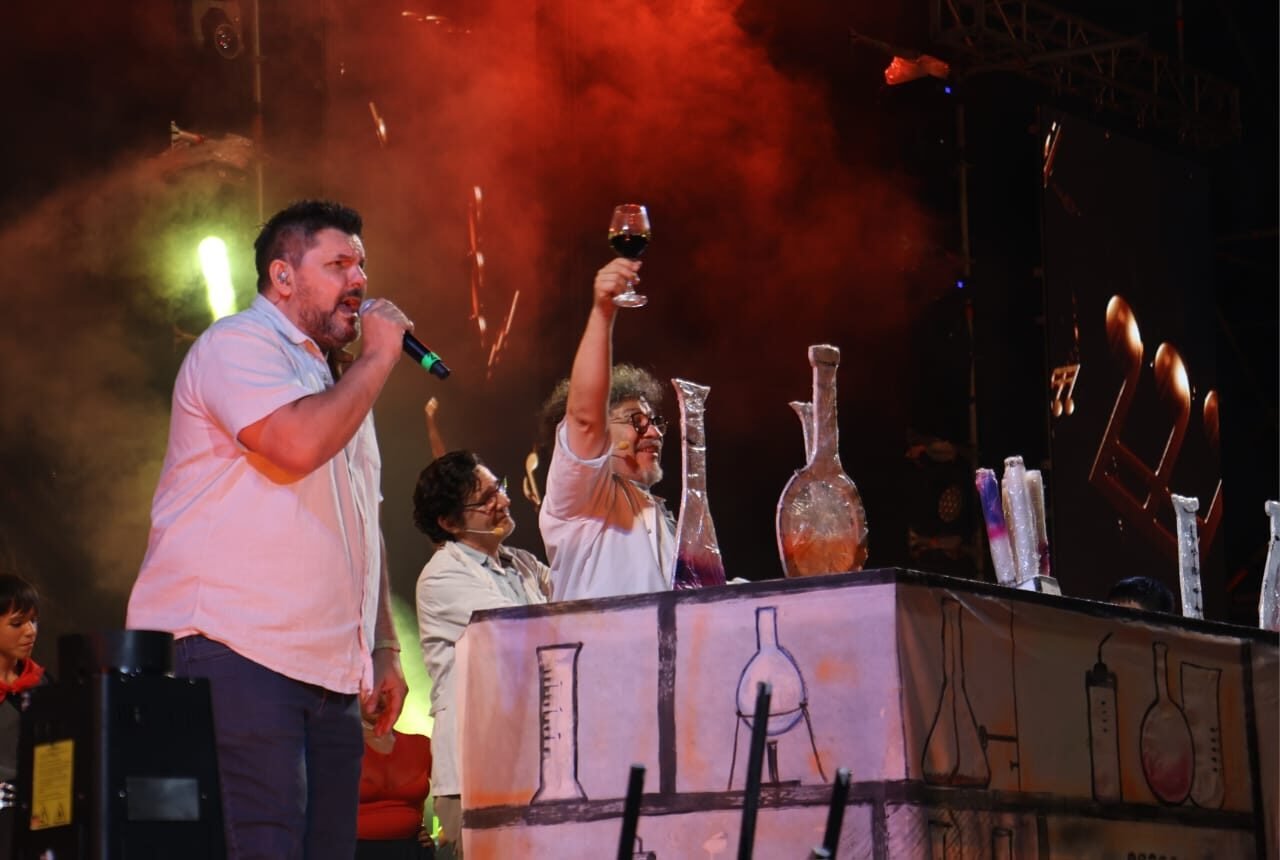 A las 22 horas llegó el turno de la Vendimia Departamental “Alquimia del Malbec”, un espectáculo que volvió a destacarse por su fuerza estética, su sensibilidad artística y su profundo anclaje en la identidad vitivinícola del departamento. La puesta en escena, dirigida por Pedro Marabini y Omar Escales, desplegó cuadros de gran impacto visual y emocional, combinando danza, actuación y música en una narrativa cuidada y potente. Una vez más, la magia, el detalle y la emoción fueron protagonistas sobre el escenario.