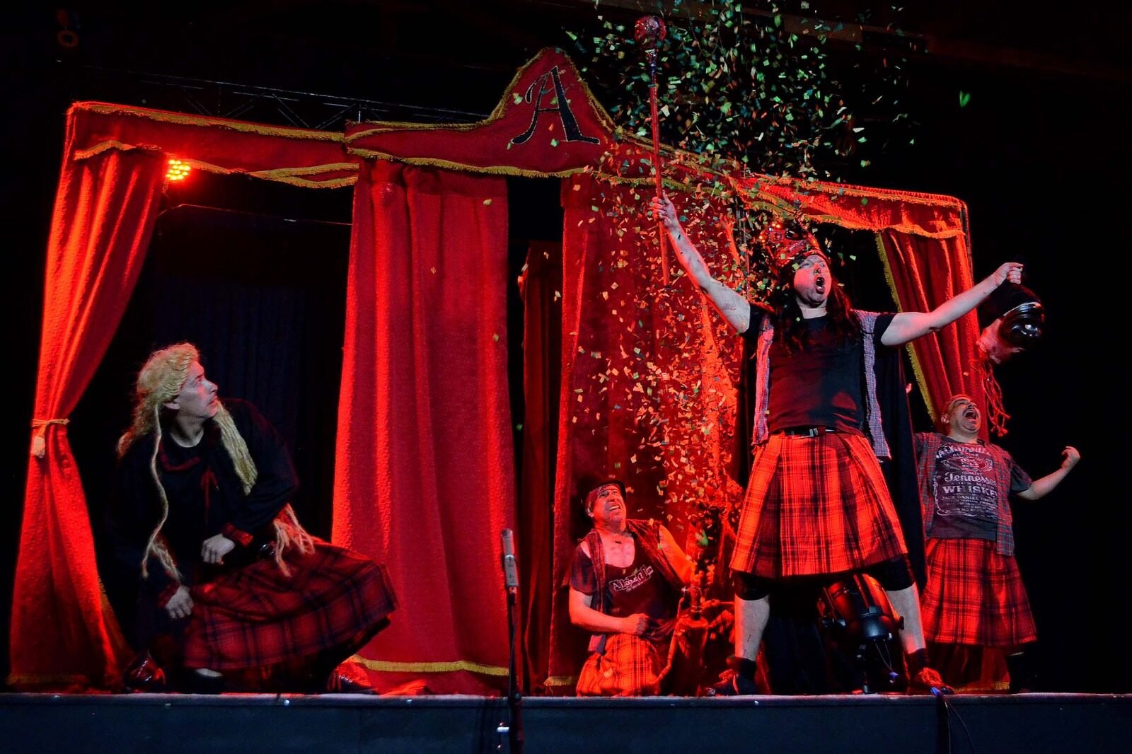 Versión tragicómica chilena del clásico shakesperiano, con humor y máscaras.