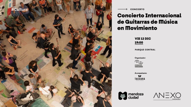 La Ciudad de Mendoza sumará una experiencia artística poco habitual: un concierto inmersivo 360° para ensamble de guitarras. Será el viernes 12 de diciembre, de 19 a 21, en la Sala Anexo MMAMM del Parque Central, con cupo limitado y entrada anticipada.