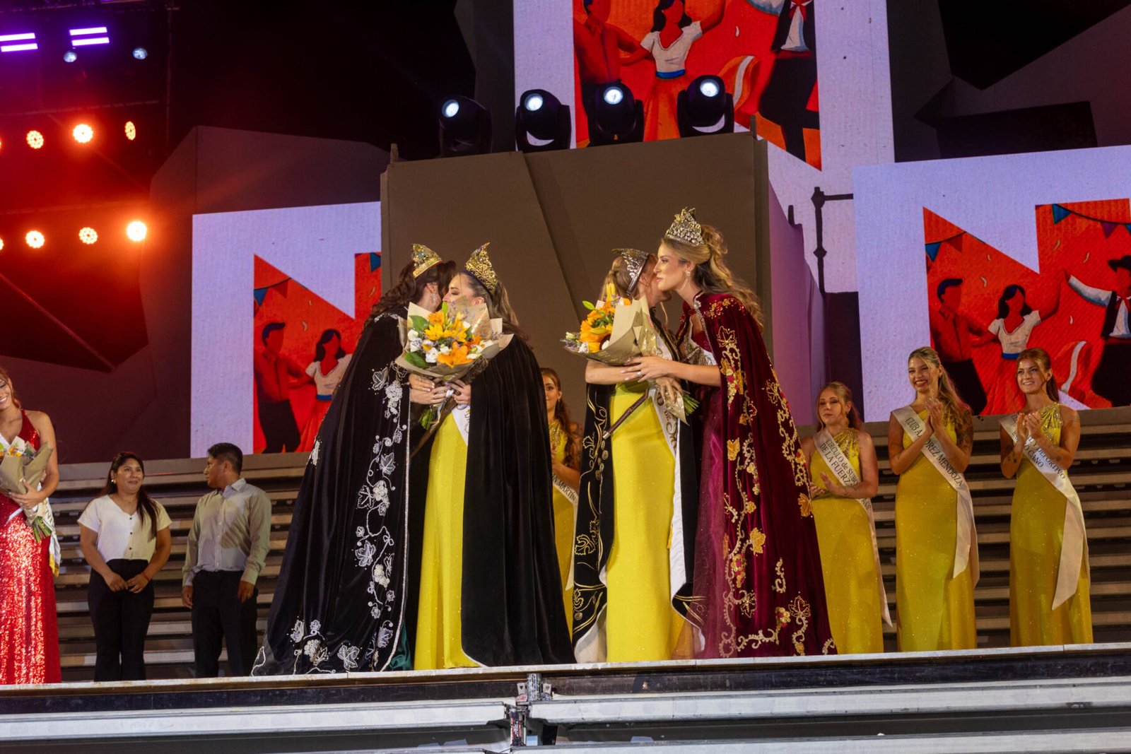 La coronación estuvo cargada de emoción: Juliana Zalazar y Agustina Capó, soberanas departamentales 2025, entregaron los atributos a las nuevas representantes en un gesto atravesado por el agradecimiento y el afecto del público.