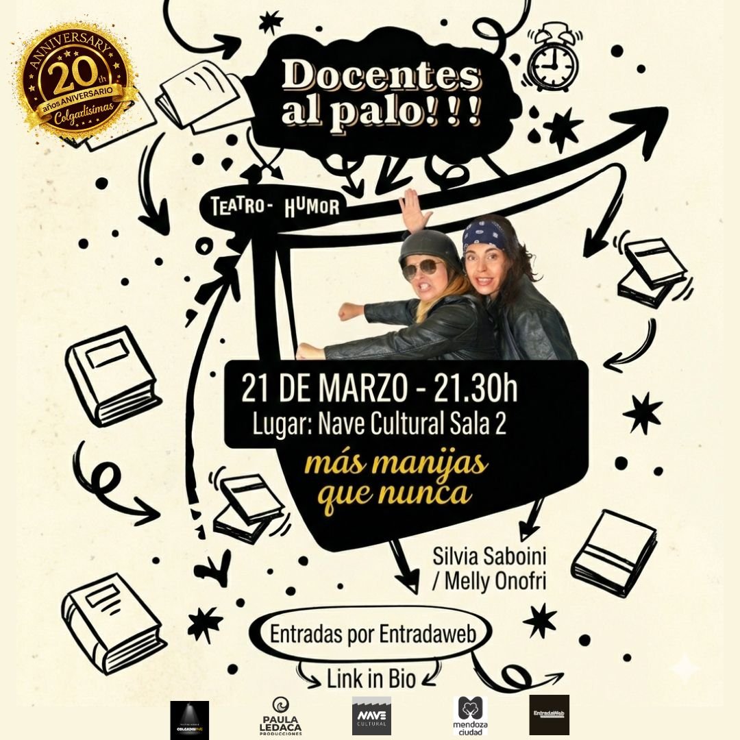 Como no podía ser de otra manera, comenzaron las clases y volvió el dúo Colgadísimas con su aplaudido espectáculo “Docentes al palo (más manijas que nunca)”. Una cita imperdible con el humor que se podrá disfrutar el sábado 21 de marzo, a las 21.30hs, en la Sala 2 de la Nave Cultural.